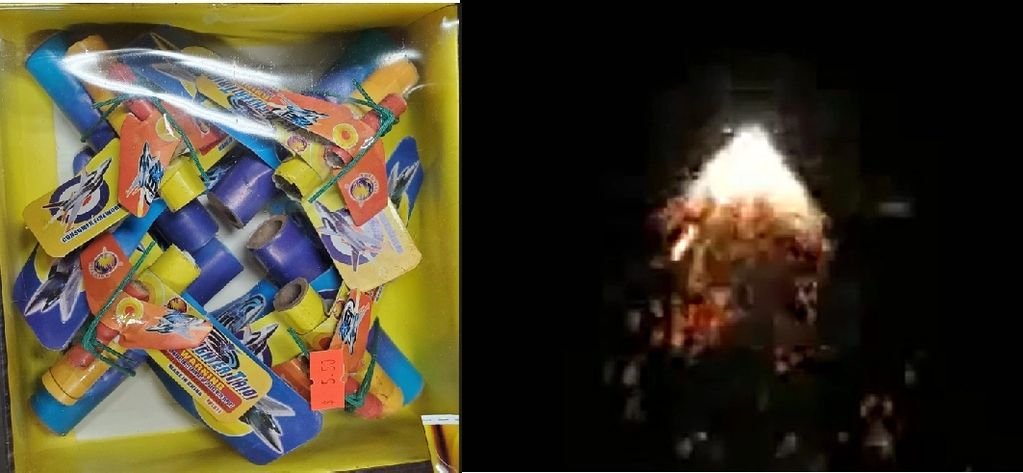 4 pack. green light spinning up with crackle, then rises further with whistle and red or white