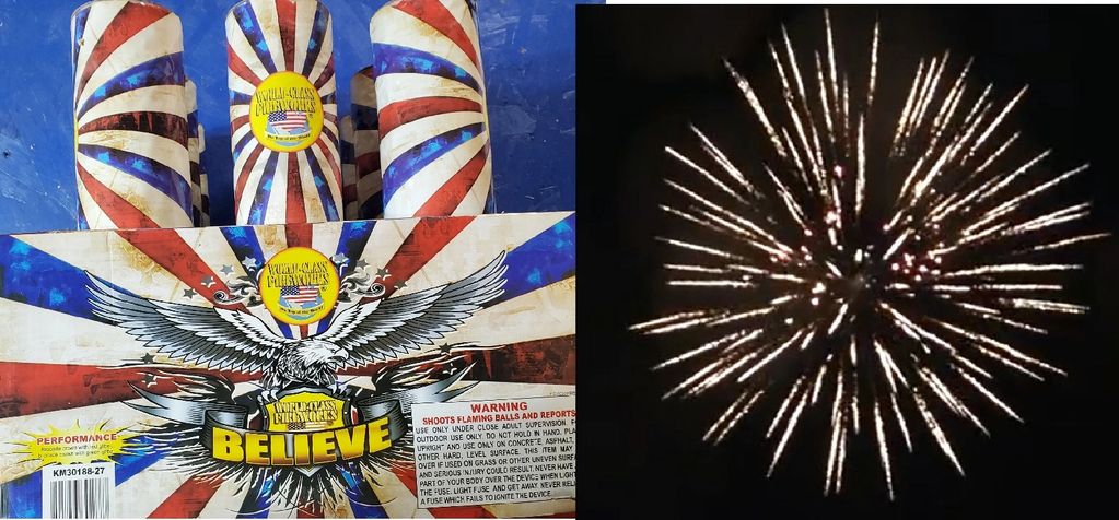 Variety of effects including strobe, crackle, willow with a false finale in the middle.