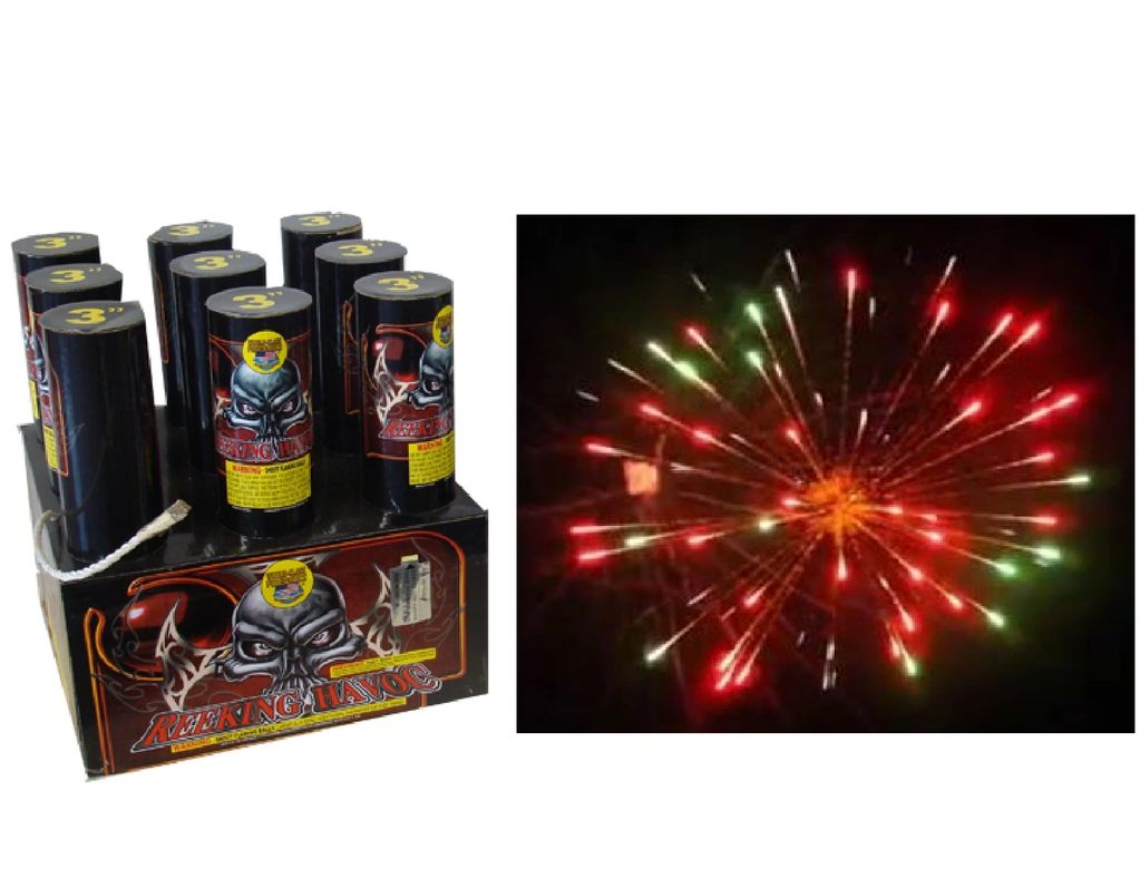assorted effects of peony, crackling, brocade crown, coco, whistle.