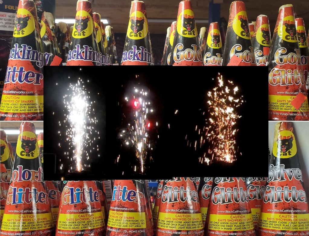 Cone fountains from Black Cat. cones in 4 different effects silver glitter gold glitter crackling glitter colorful glitter