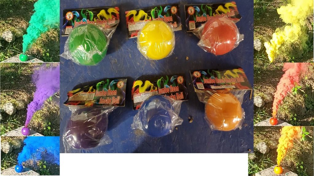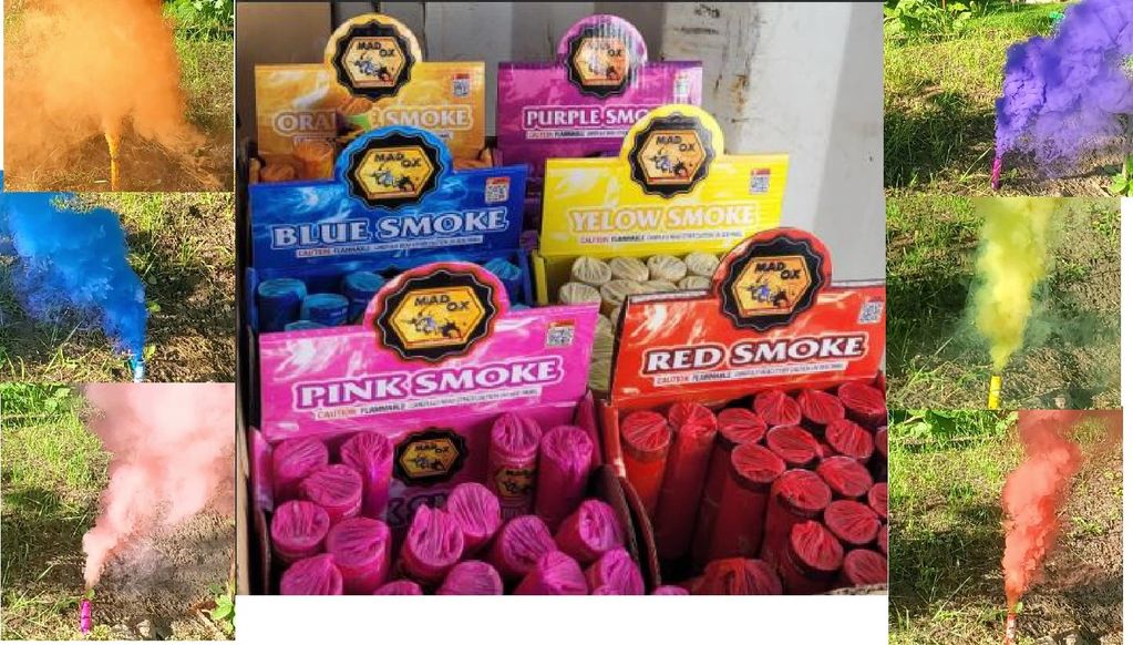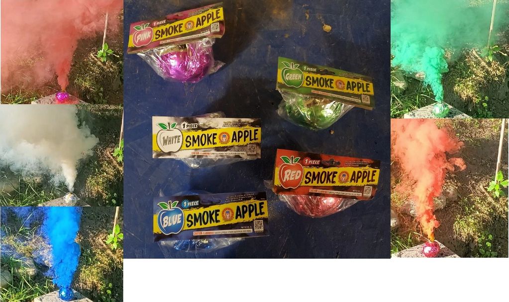 Thick colored smoke that lasts about a minute. Choice of colors pink, white, blue, green, red