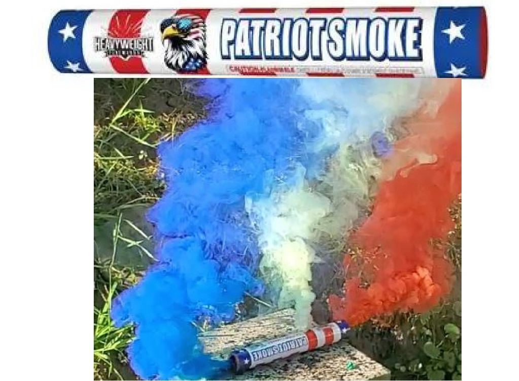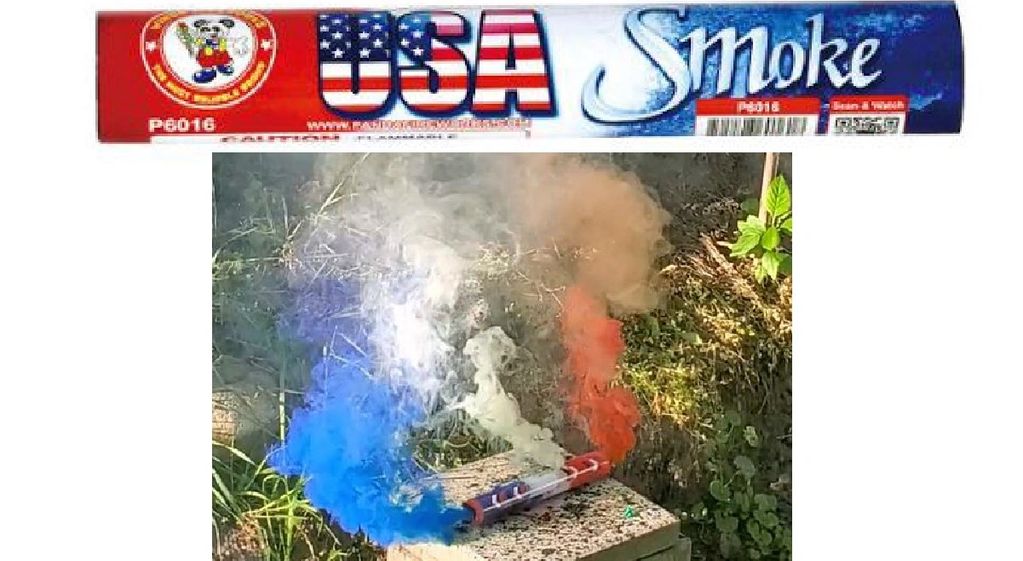 thick red, white, and blue smoke that lasts a little over a minute going all at once